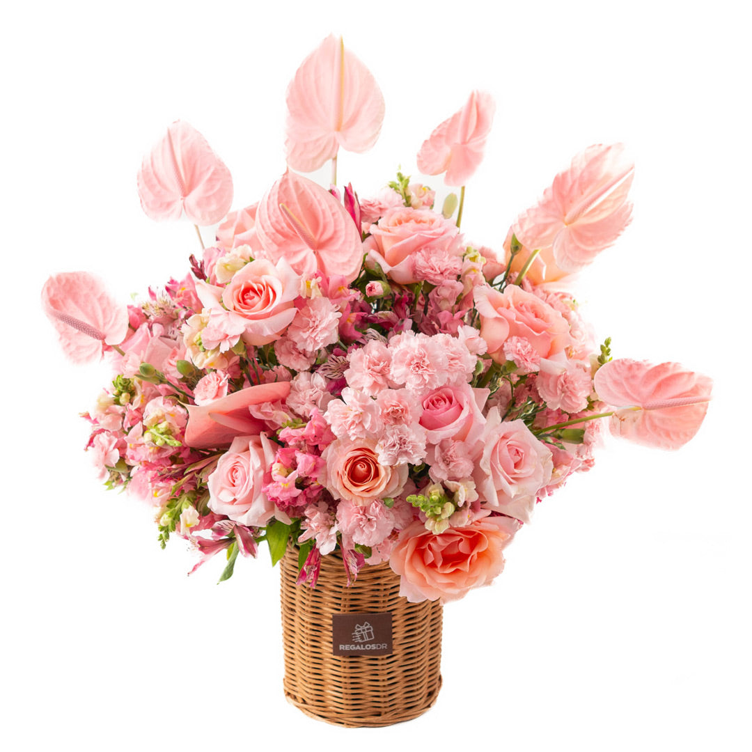 Encantador Arreglo en nuestra cesta artesanal de mimbre.